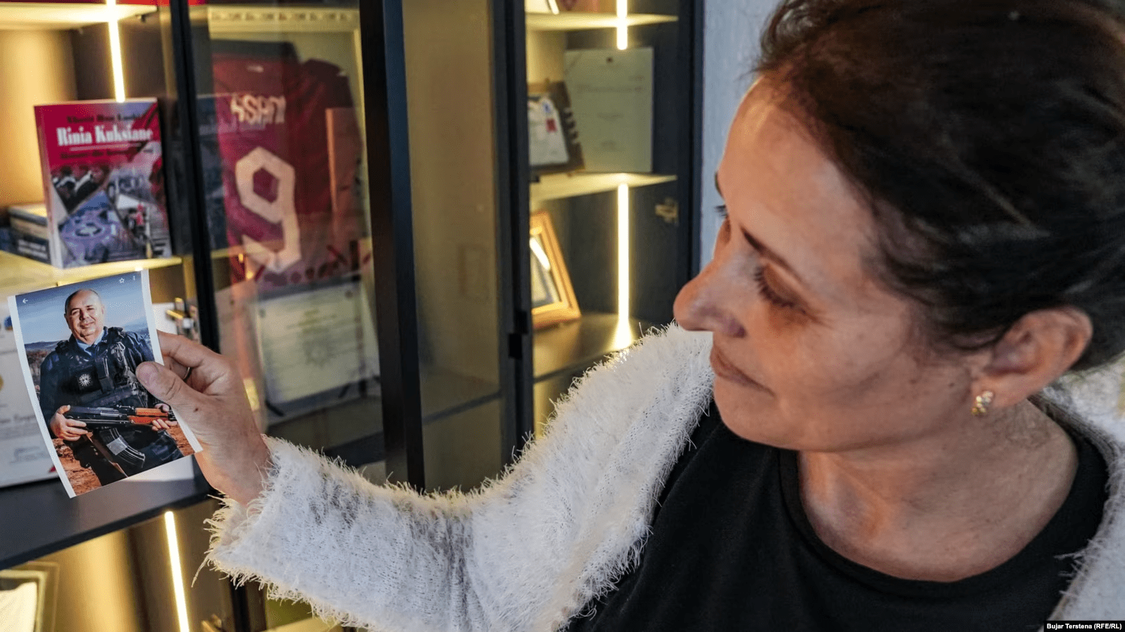 “Iu thashë: Nëse e kanë vrarë Afrimin, më vrisni edhe mua”, shprehet ajo, me zërin që i dridhet, teksa luhat shikimin nëpër dollapin e mbushur me fotografi, mirënjohje e kujtime nga jeta e burrit të saj.