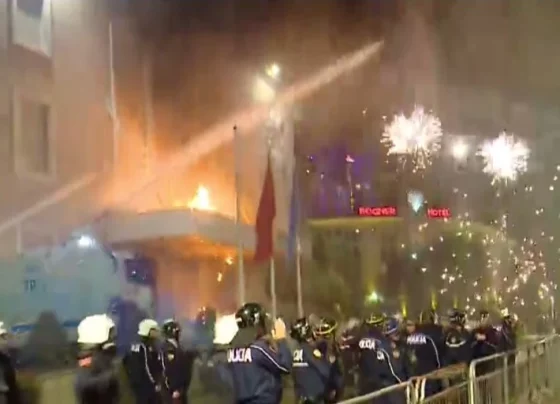 Tensione të forta në protestën e PD-së, hidhen mjete piroteknike pranë Kryeministrisë