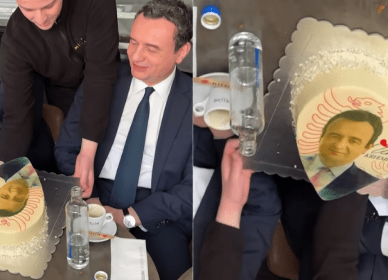 Kurti feston ditëlindjen në veri të Mitrovicës, befasohet me tortë nga bashkë-partiakët
