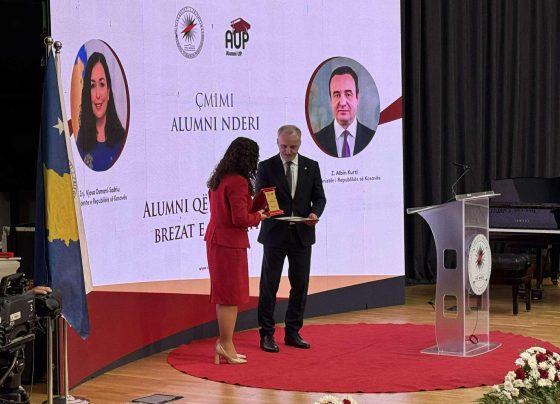 Presidentja Vjosa Osmani pasi mori çmimin “Alumni Nderi i Universitetit të Prishtinës” u pyet nga gazetarët për vendimin e Gjykatës…