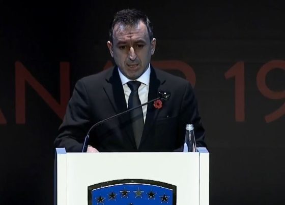 Kryetari i Kuvendit të Kosovës, Dimal Basha, në Akademinë Përkujtimore në kuadër të shënimit të 27-vjetorit të Masakrës së Reçakut,…