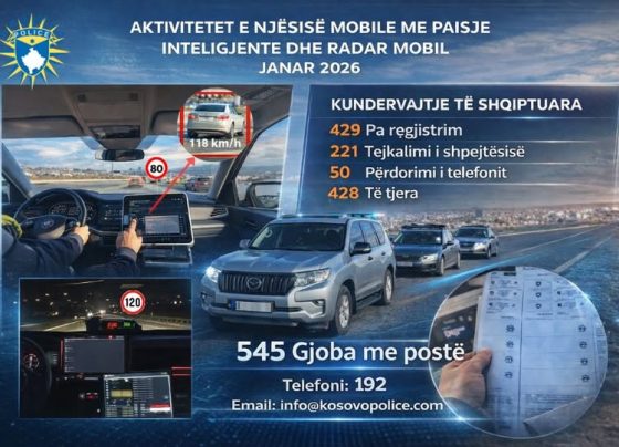 Nga pajisjet inteligjente dhe radarë mobil vetëm gjatë muajit janar janë shqiptuar 1 mijë e 128 gjoba për shkelje të…