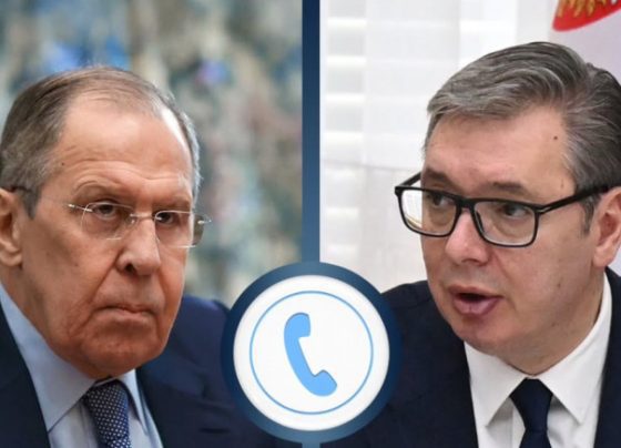 Presidenti i Serbisë, Aleksandër Vuçiq, gjatë një bisede telefonike me ministrin e Punëve të Jashtme të Federatës Ruse, Sergej Lavrov,…