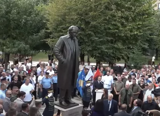 Ukë Rugova në zbulimin e shtatores së babit të tij në Podujevë: Zoti të vazhdojë ta bekojë Republikën e Kosovës bashkë me SHBA-të