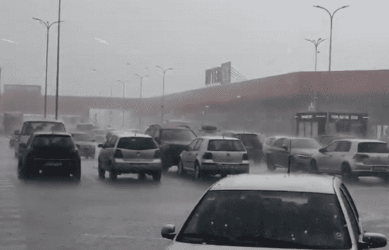 Një stuhi shiu e breshëri përfshin Pejën