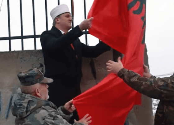Në një xhami të Prishtinës himni lëshohet në vend të ezanit, hoxha puth flamurin si Isë Boletini