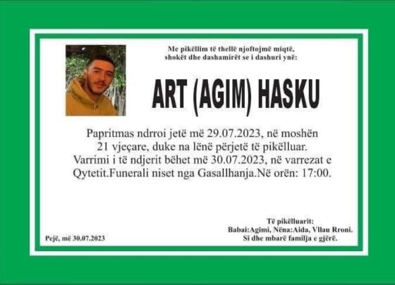 Sot varroset 21 vjecari, Art Hasku. I ndjeri u gjet i vdekur pasditen e ditës së djeshme në banesën e…