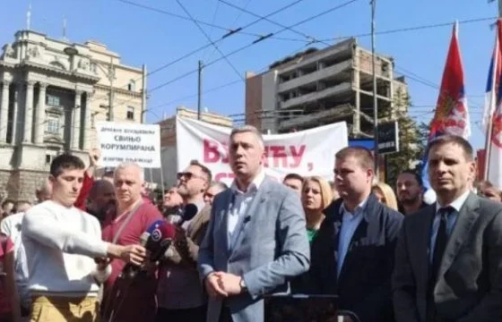 Mbështetësit e opozitës së djathtë, që shpesh janë akuzuar për qëndrime ekstremiste, bllokuan rrugët para ndërtesës së Qeverisë së Serbisë,…