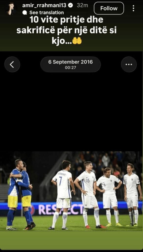 “10 vite pritje dhe sakrificë për një ditë si kjo…”, ka shkruar Rrahmani në Instastory.