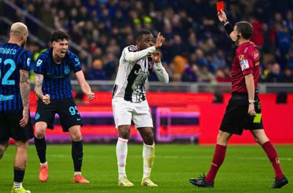 Interi goditi dy herë shtyllën, por momenti më i diskutueshëm erdhi në minutën e 42-të: Kalulu, tashmë i ndëshkuar me të verdhë, u përjashtua pas një ndërhyrjeje ndaj Bastonit, edhe pse pamjet e treguan se nuk pati kontakt. VAR nuk mundi të ndërhynte dhe Juventusi mbeti me dhjetë lojtarë për gjithë pjesën e dytë.