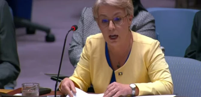 Donika Gërvalla, Ministrja në detyrë e Punëve të Jashtme, Donika Gërvalla, në fjalën e saj në Këshillin e Sigurimit, në përgjigje të parafolësit të saj serb, Marko Gjuriq, ka theksuar se “Kosovë e Metohi” nuk ekziston, raporton Gazeta “Enigma”. “Nuk ka Kosovë dhe Metohi, ajo nuk ekziston. Kosova dhe Metohia është shprehje e qartë e … Continue reading Gërvalla i përgjigjet Gjuriqit në OKB: Nuk ekziston Kosova e Metohia