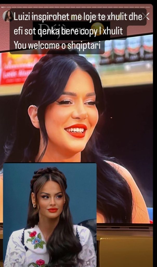 Juli ka postuar një kolazh fotosh që tregojnë stilin identik të flokëve që Efi pati mbrëmë në spektakël me atë që bukuroshja kishte në prime-n festiv të 17 shkurtit.