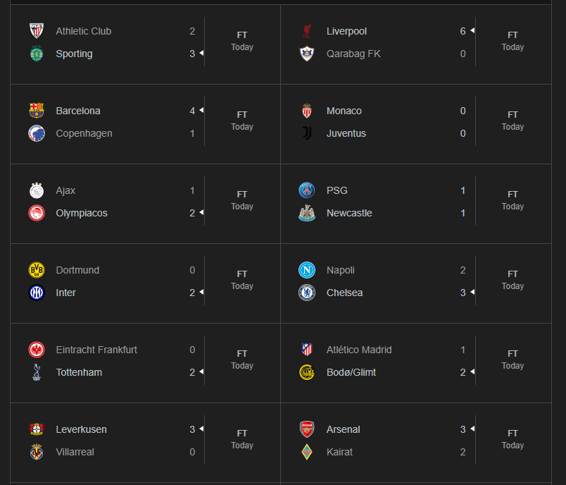 Janë zhvilluar sot 18 ndeshje në kuadër javës së tetë të fazës së ligës në Ligën e Kampionëve.