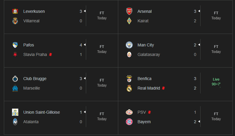 Befasia më e madhe ishte humbja e Real Madridit ndaj Benficas, me rezultat 3-2.