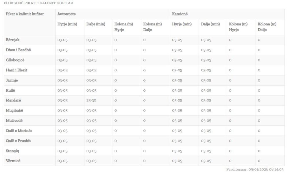 Qendra Kombëtar për Menaxhim Kufitar, i ka përditësuar të dhënat për pritjet në pikat kufitare.