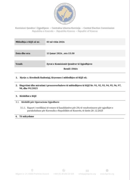 Në njoftimin e KQZ’së bëhet e ditur se në rend dite janë 4 pika.