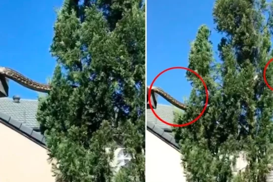 Një video tronditëse ka kapur momentin kur një piton 5 metra i gjatë rrëshqet mbi çatinë e shtëpisë së një