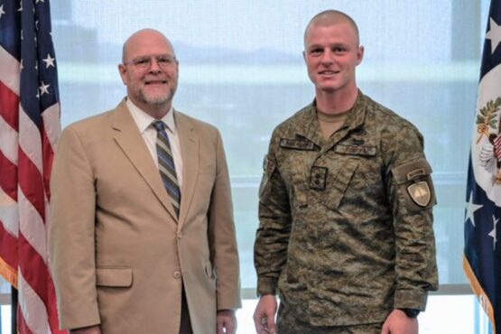 Ambasadori amerikan, Jeff Hovenier, ka pritur në takim ushtarin e FSK-së, Ylli Dalladaku, i cili përfundoi studimet në akademinë ushtarake
