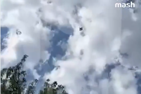 Pamje nga momenti kur rrëzohet një aeroplan rus SU-34 dhe një helikopter Mi-8 në kufi me Ukrainën