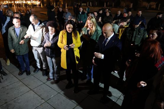 Në nderim të avokatit Andrew Strong, i cili mbrëmë papritur u nda nga jeta, sonte u ndezën qirinj pranë Teatrit