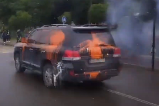 Vetura e ministrit Elbert Krasniqi sulmohet me ngjyrë nga protestuesit në Leposaviq