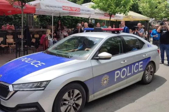 Një automjet i Policisë së Kosovës sapo është bllokuar nga protestuesit në Zveçan. Automjeti në të cilin ndodhen tre policë,