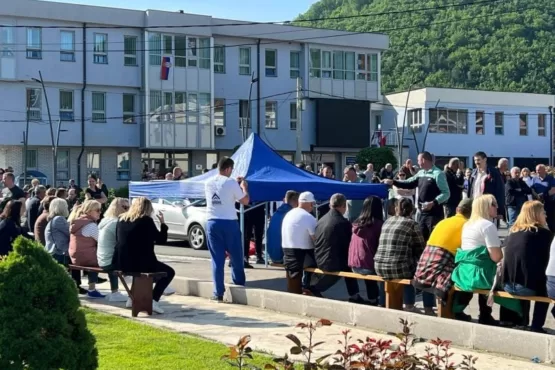Dhjetëra serbë që tashmë janë mbledhur para komunës së Zubin Potokut, kanë ngritur disa tenda në mes të rrugës. Përveç