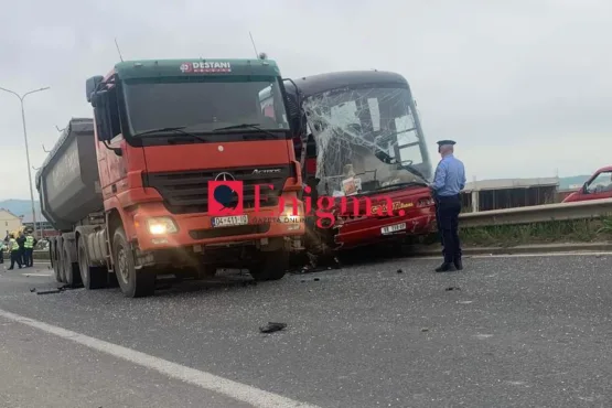 Dalin pamjet – momenti kur aksidentohen kamioni dhe autobusi në Vragoli