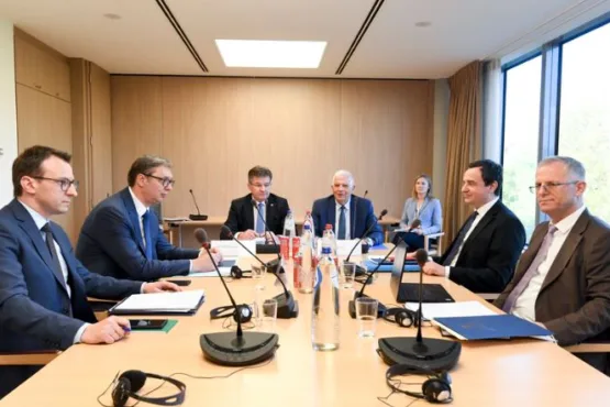 Kryeministri i Kosovës, Albin Kurti, dhe presidenti i Serbisë, Aleksandar Vuçiq, nisën takimin e përbashkët në Bruksel, me ndërmjetësimin e