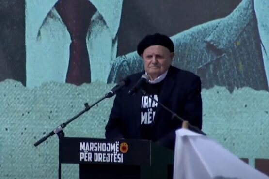 Milazim Thaçi, i mbijetuar i Masakrës së Izbicës po merr pjesë në “Marshin për Drejtësi” që po zhvillohet në sheshet