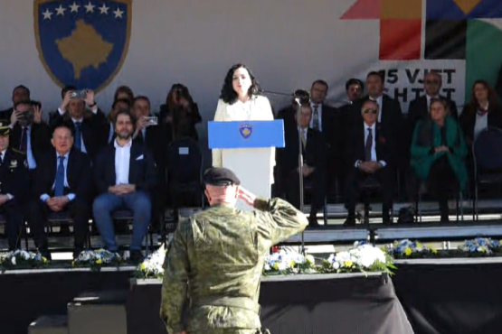 Presidentja e Republikës së Kosovës Vjosa Osmani, në fjalimin e saj pas parakalimit të Frocës së Sigurisë së Kosovës dhe