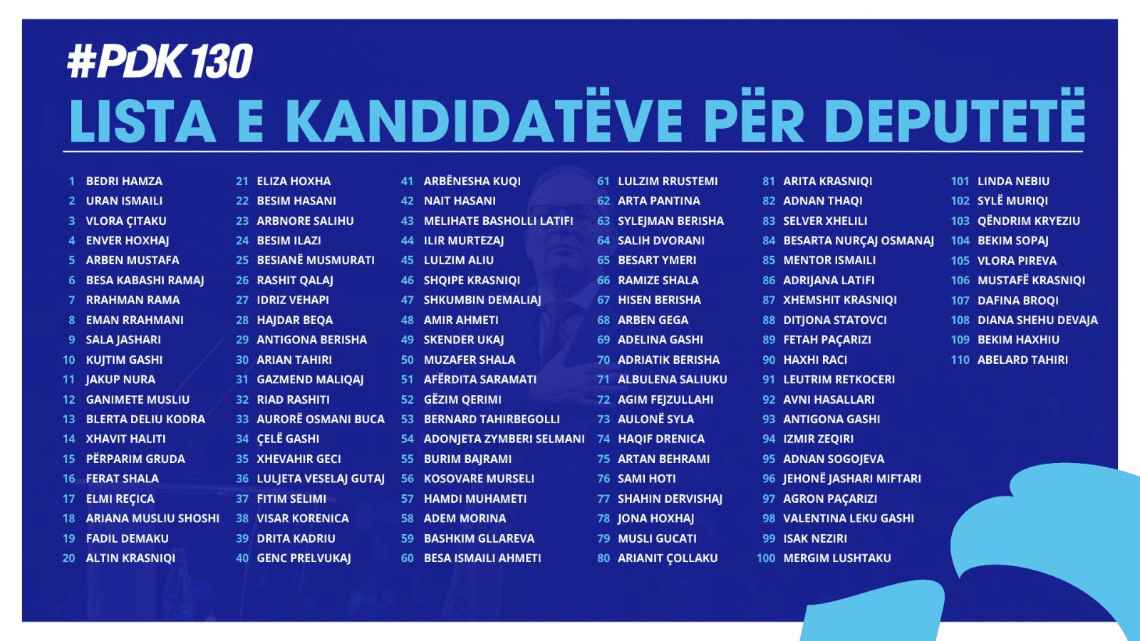 Top 10shen e PDK-së tani e përbën edhe Eman Rrahmeni, i cili është renditur i teti në listë.