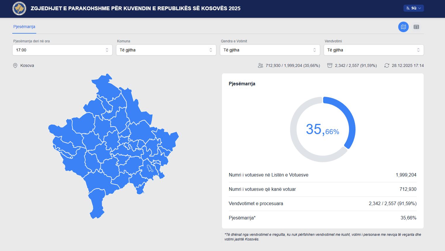 712 mijë e 930 qytetarë kanë shfrytëzuar sot të drejtën për të votuar, deri në orën 17:00.