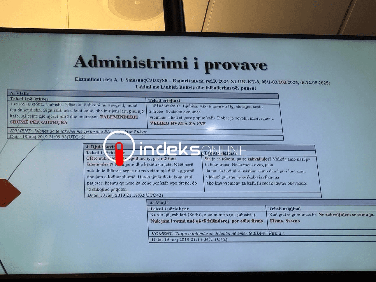 Prokuroria thotë se mesazhet dhe dokumentet e administruara po trajtohen si pjesë e provave që lidhen me aktivitet të dyshuar të inteligjencës, ndërsa mbrojtja i ka kundërshtuar këto pretendime.