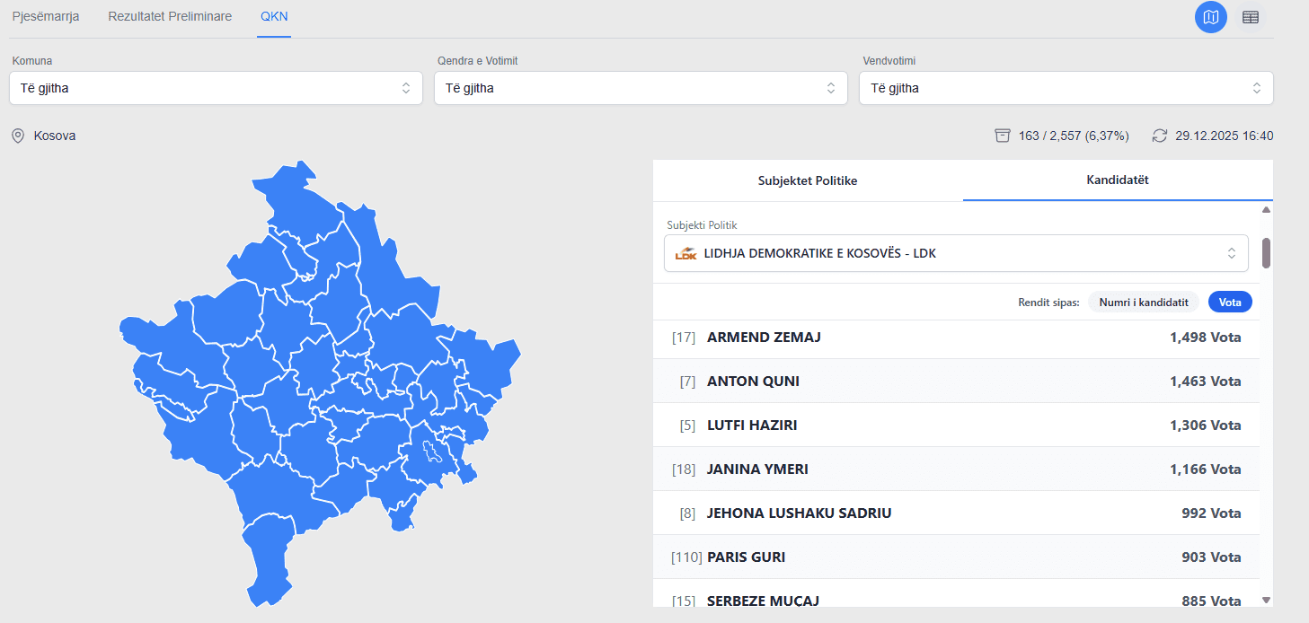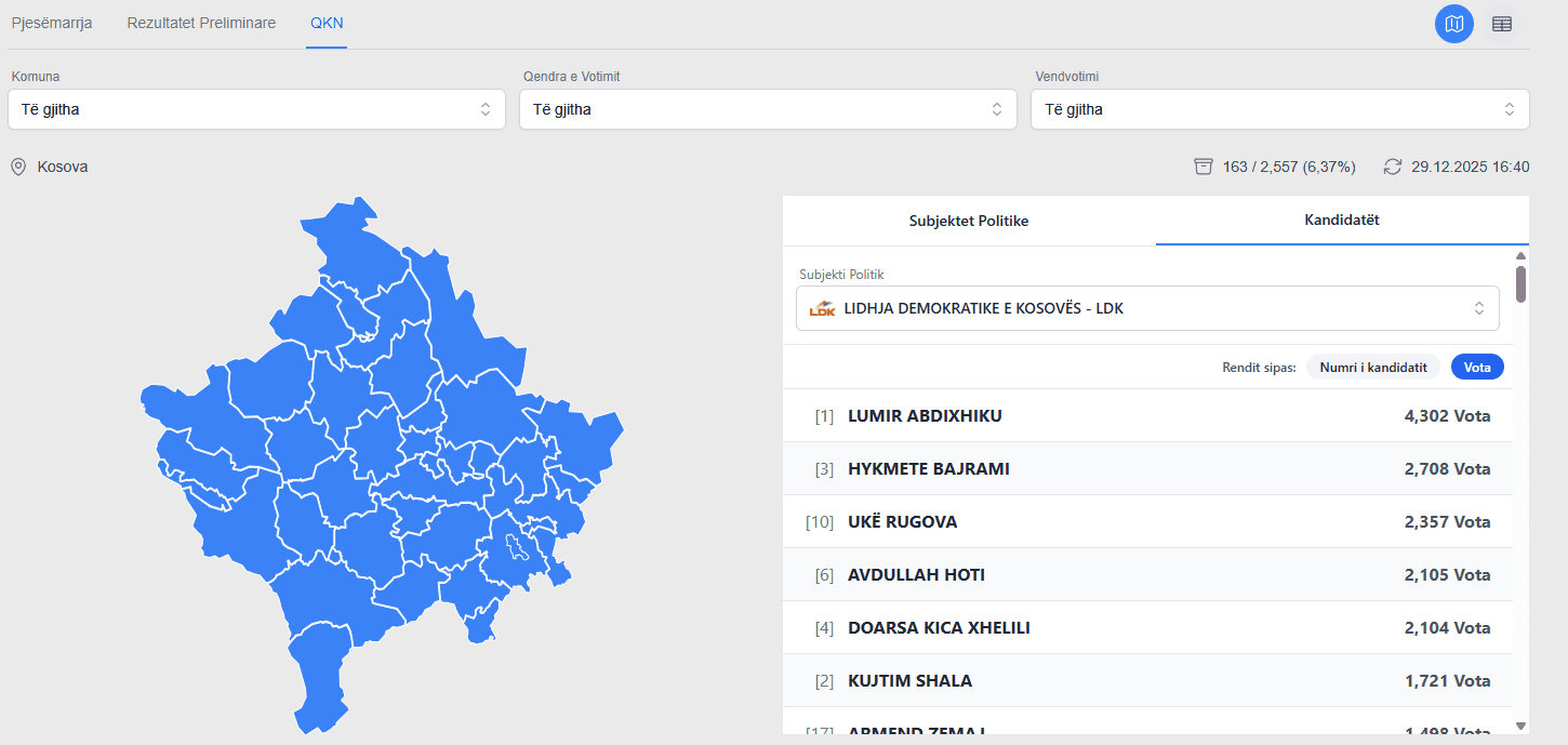 KQZ ka filluar me publikimin e të dhënave për kandidatët më të votuar nga zgjedhjet e 28 dhjetorit.