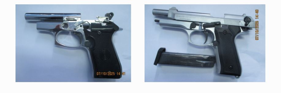 Gjatë kontrollit në shtëpinë e tij, policia konfiskoi dy pistoleta dhe një karikator.