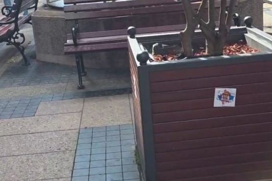Serbët vendosin hartën e Kosovës me flamurin e Serbisë në qytetin ku ndodhet hoteli i Kombëtares shqiptare