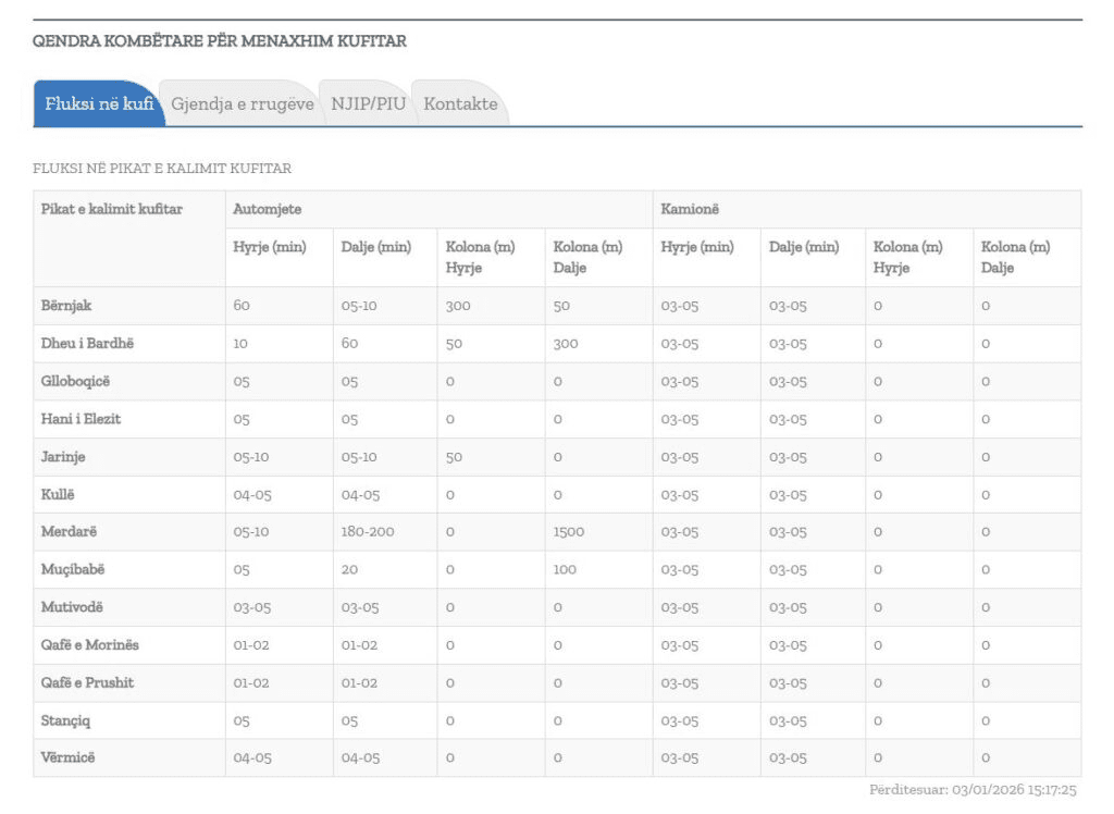 Sipas përditësimit të fundit të të dhënave nga Qendra Kombëtare për Menaxhim Kufitar, në Merdarë po pritet deri në 3 orë e 20 minuta.