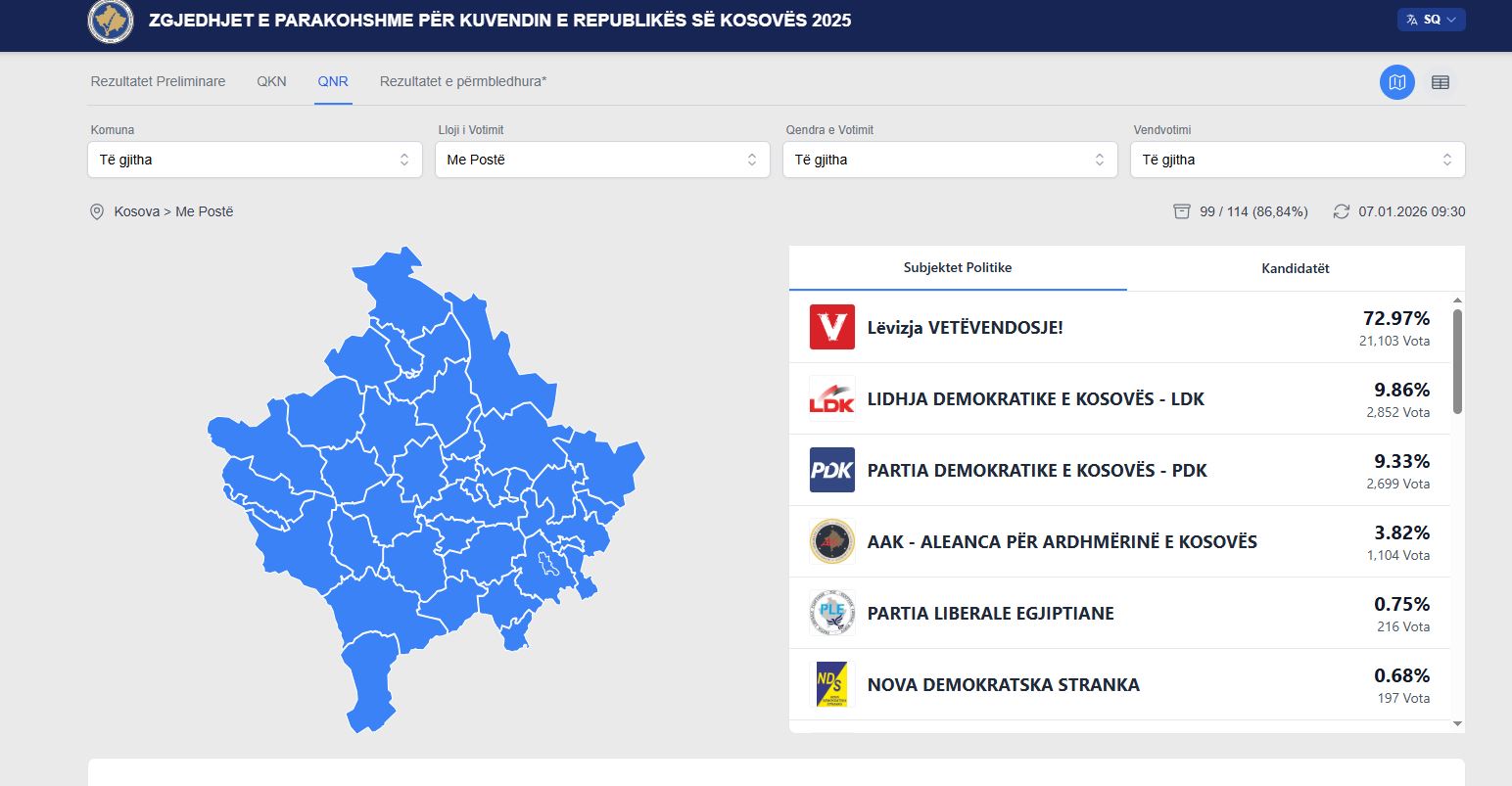 Nga përditësimi i fundit, Vetëvendosje mbetet e para, me 72.97 për qind.